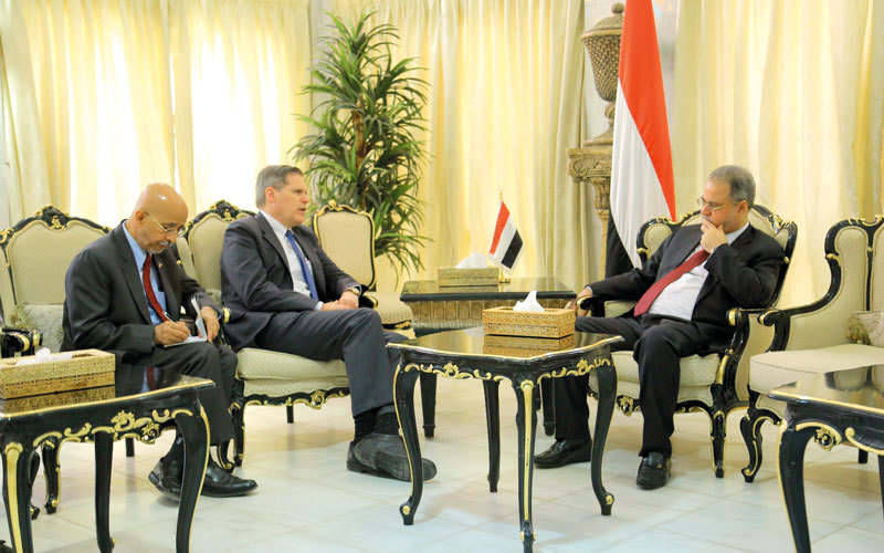 المخلافي خلال لقائه السفير الأميركي لدى اليمن. سبأنت