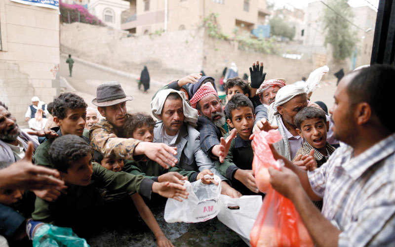 يمنيون في صنعاء أفقرهم الانقلاب يصارعون للحصول على مساعدات غذائية. رويترز