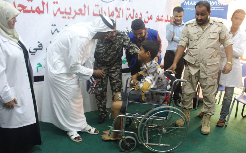 أحد الأطفال المصابين بالسرطان المستفيدين من برنامج تحقيق الأمنيات في عدن. الإمارات اليوم