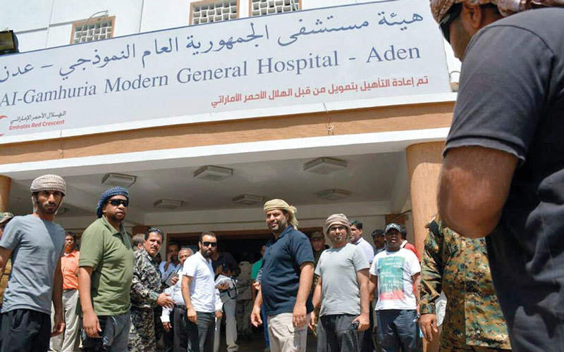 إعادة تأهيل مستشفى الجمهورية في عدن أحد المشروعات التي موّلتها هيئة الهلال الأحمر. الإمارات اليوم