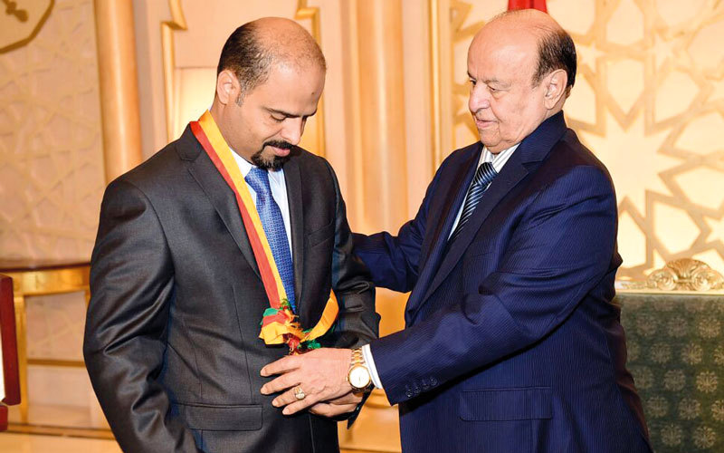 منح الرئيس اليمني عبدربه منصور هادي، أمس، وسام الشجاعة للشهيد اللواء الركن أحمد سيف اليافعي.