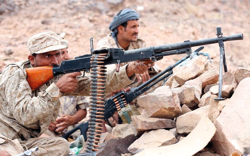 مقاتل من قوات الشرعية يستهدف برشاش موقعاً لميليشيات الحوثي في محافظة مأرب. رويترز