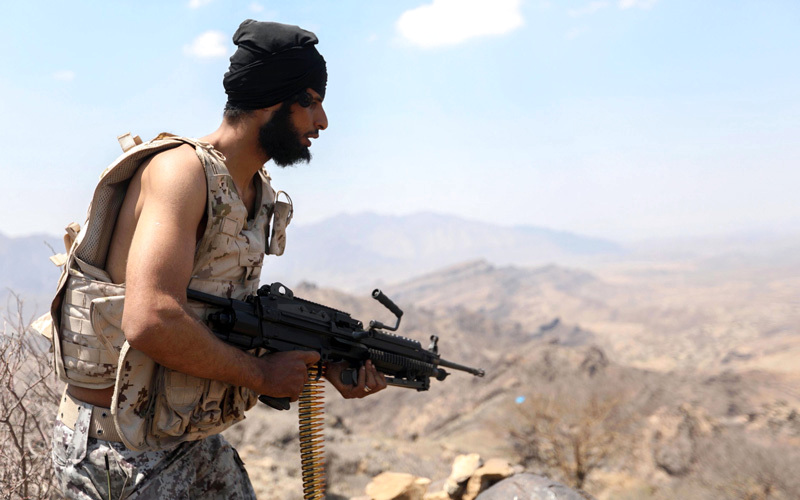 مقاتل من الشرعية في إحدى المناطق بتعز. أ.ف.ب