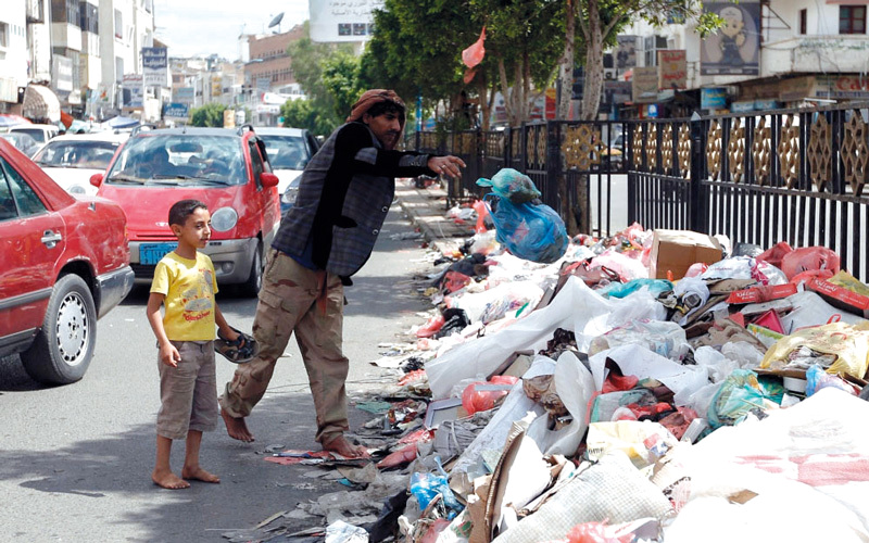 تكدس القمامة في صنعاء نتيجة ممارسات الحوثيين وراء انتشار الكوليرا. أ.ف.ب