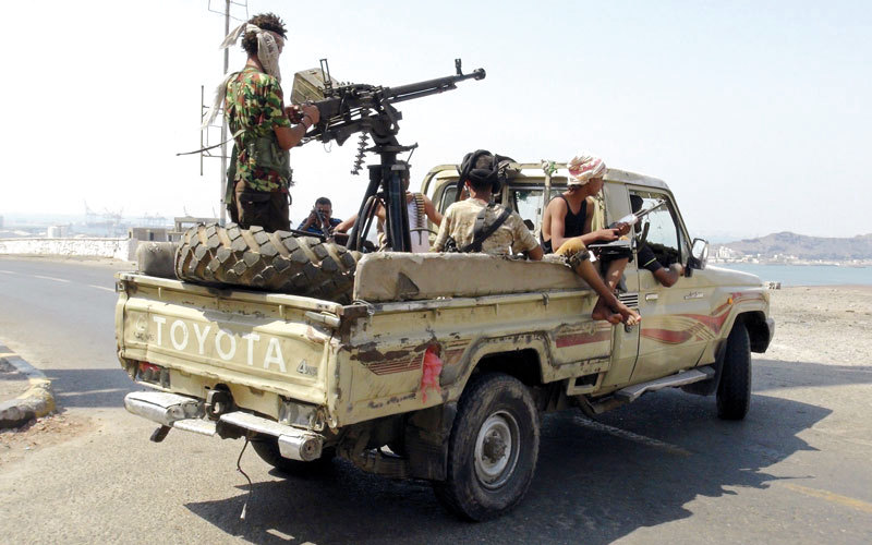 دورية لقوات الشرعية في مدينة عدن. رويترز