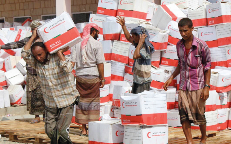 من جهتها، وزعت هيئة الهلال الأحمر الإماراتي، آلاف السلال الغذائية في مدن ومناطق يمنية عدة تزامناً مع حلول شهر رمضان، وفي إطار الجهود الحثيثة والمتواصلة التي تبذلها الإمارات للتخفيف من حدة الأوضاع الإنسانية التي تعصف بسكان المناطق والمدن اليمنية، بسبب الحرب التي يقف وراءها الانقلابيون.