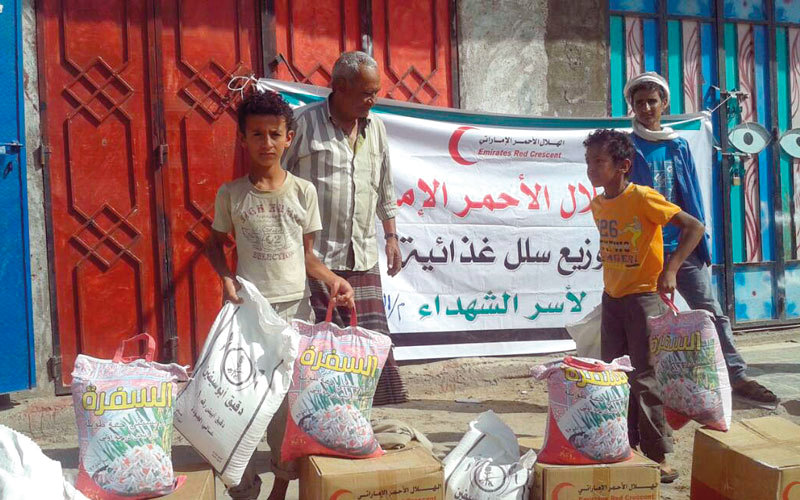 وزعت هيئة الهلال الأحمر الإماراتي مساعدات إغاثية غذائية، على أسر وعائلات 1048 شهيداً في محافظة الضالع.