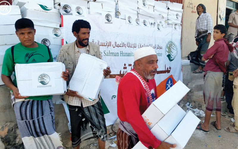 توزيع مساعدات من مركز الملك سلمان للإغاثة على أهالي حضرموت. أرشيفية