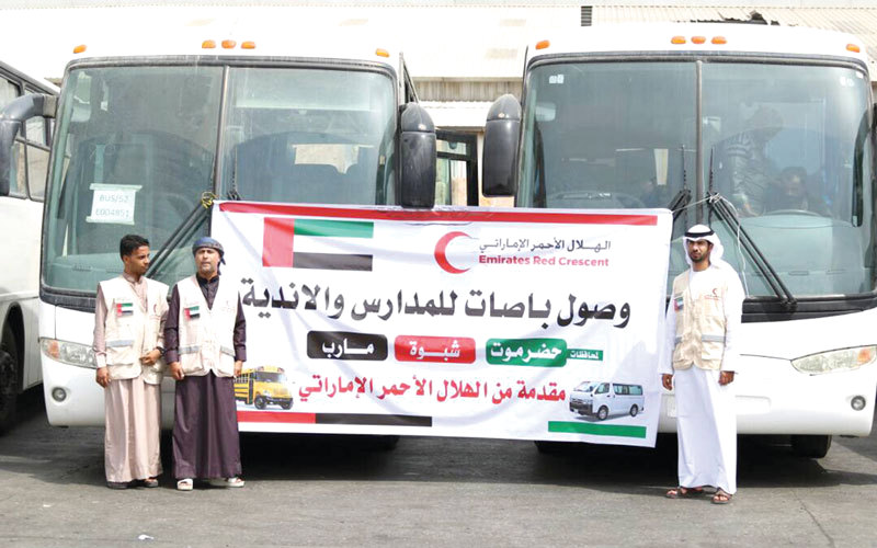 وصول الحافلات يأتي في إطار دعم الإمارات للمحافظات المحررة. وام
