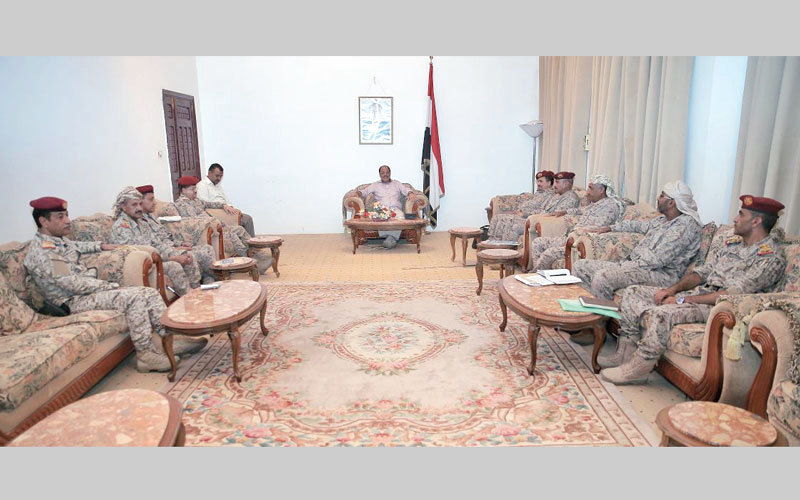 وأشاد الفريق محسن، بالانتصارات الجديدة للجيش الوطني والمقاومة الشعبية في صرواح وبقية جبهات القتال ضد الانقلابيين، مجدداً التأكيد على أن أولويات الحكومة اليمنية الشرعية تتمثل في إنهاء الانقلاب ومحاربة الإرهاب كمطلبين ملحين.