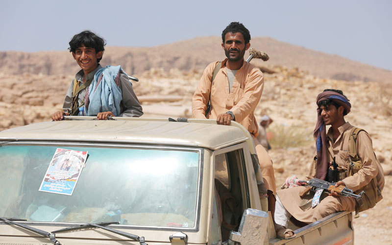عناصر من المقاومة خلال المواجهات مع الميليشيات في إحدى المناطق بمأرب. رويترز