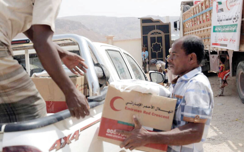 مساعدات إغاثية من الإمارات للأسر الفقيرة بمديرية حجر غرب حضرموت. وام