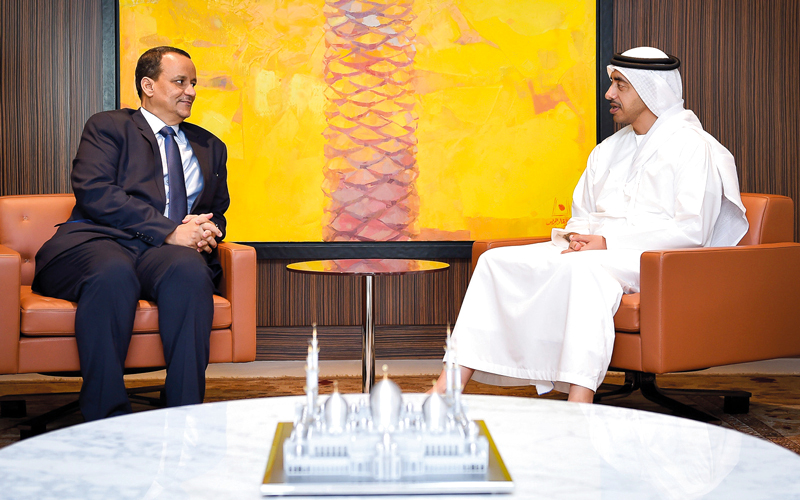 وجرى خلال اللقاء، الذي عقد في ديوان عام الوزارة بأبوظبي، بحث تطورات الأوضاع في اليمن، والجهود التي يقوم بها مبعوث الأمين العام للأمم المتحدة لحل الأزمة اليمنية، إضافة إلى جهود الإغاثة التي تبذل لإيصال المساعدات الإنسانية إلى اليمن.