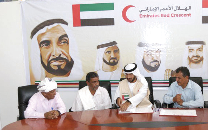 وقّعت هيئة الهلال الأحمر الإماراتي، أمس، اتفاقية تنفيذ مشروع شبكة مياه منطقة العصبة وعصم، بمديرية السوم بمحافظة حضرموت اليمنية. وتنص الاتفاقية على تنفيذ تمديدات وحفريات، وربط الآبار بخزان المياه في المنطقة، وتأهيل الشبكات الداخلية، وتركيب محطات الضخ، وإنشاء شبكات مياه، إلى جانب تجهيز المواقع من محطات ضخ وخزانات. وأكد رئيس فريق «الهلال الأحمر الإماراتي» بحضرموت، أحمد النيادي، عقب الاتفاقية - التي حضر توقيعها مدير عام مديرية السوم، سليم سعيد باشامخة، ومدير المشروع، سعيد عوض باحميش، ومندوب المنطقة، عوض بن محمد بن قفلة - أهمية البدء في هذا المشروع لما له من أهمية قصوى على صعيد توفير مياه صالحة للشرب، وشدد على أن الاتفاقية تأتي في إطار تقديم خدمات أفضل ضمن مشروعات التنمية والبنية التحتية، موضحاً أن الهيئة تبنت خطة متكاملة لتنفيذ مشروعات متعلقة بالمياه والصحة والتعليم والبنى التحتية على مراحل عدة. وقال إن مشروعات البنية التحتية تأتي ضمن أولويات الهيئة لإعادة الحياة إلى طبيعتها وما كانت عليه قبل الأزمة في المنطقة. وأضاف أن المشروع سيسهم بشكل كبير في تحسين ظروف أهالي المنطقة، واستقرار سكان القرى في مواطنهم وعدم هجرتهم منها، فضلاً عن الحفاظ على صحة الناس والتغلب على مشكلة شح المياه وتوفير كميات كافية منها في المناطق والقرى المستفيدة.