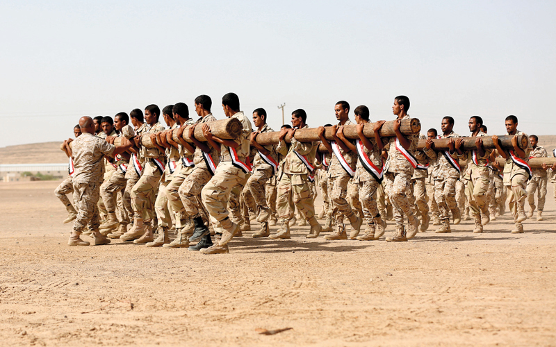 قوات من الشرعية خلال عرض عسكري في مأرب. رويترز
