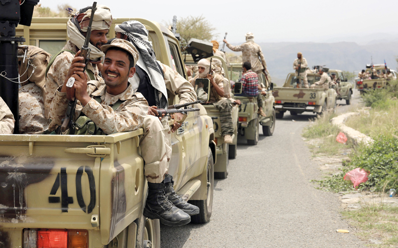 رتل من سيارات لقوات الشرعية في منطقة يافا شمال عدن. أ.ف.ب