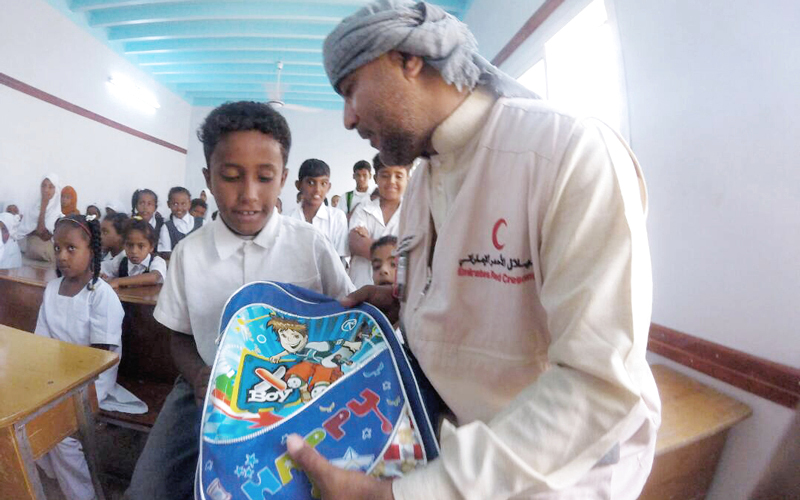 «الهلال» زار عدداً من المدارس بمنطقة زغفة ووزع الحقائب على الطلاب. وام