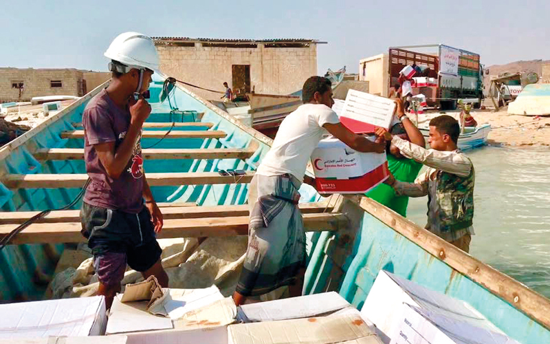 المساعدات لجزيرة ميون اشتملت على مواد غذائية متنوعة. وام