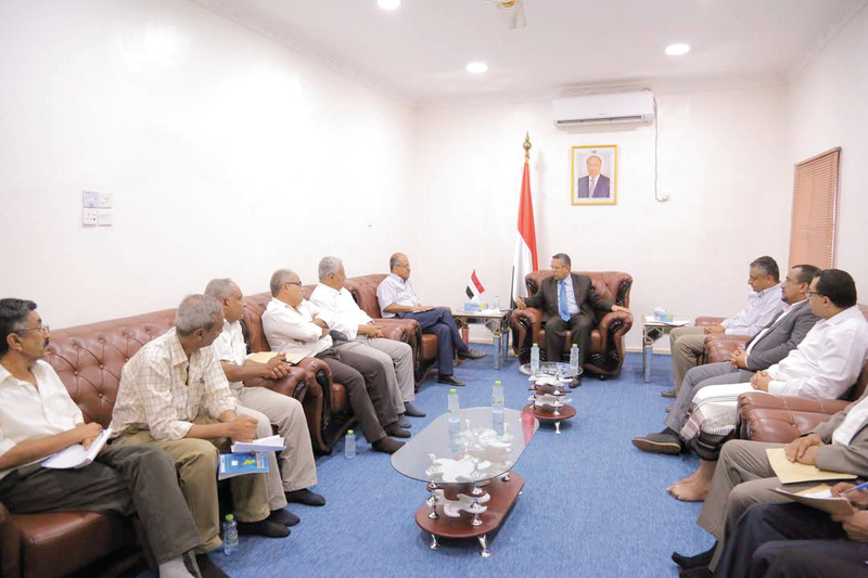 بن دغر خلال لقائه ممثلي اعتصامات الموظفين في تعز. سبأنت