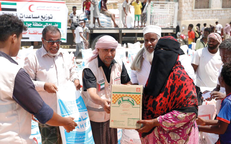 توزيع ثلاثة آلاف سلة غذائية على الأسر المحتاجة والمعوزة بالمكلا. وام