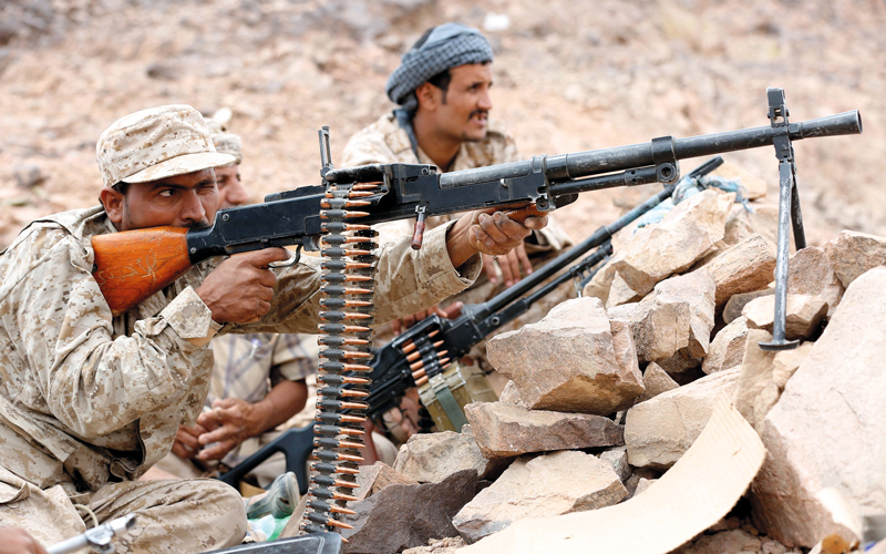 مقاتل من قوات الشرعية يستهدف برشاش موقعاً للانقلابيين الحوثيين في محافظة مأرب. رويترز