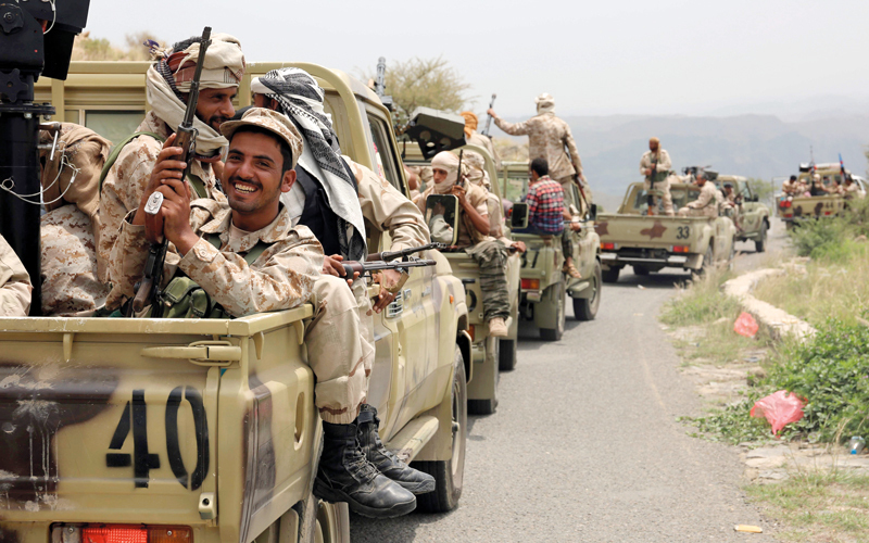 رتل من سيارات قوات الشرعية في أحد طرق مناطق شمال عدن. أ.ف.ب