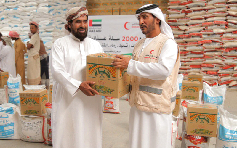 قدمت هيئة الهلال الأحمر الإماراتي، أمس، مساعدات إغاثية عاجلة للأسر المحتاجة بمديرية رماه وثمود والقف بصحراء حضرموت، في إطار الدعم المتواصل الذي تقدمه دولة الإمارات العربية المتحدة للأشقاء في اليمن، بتوجيهات القيادة الرشيدة لصاحب السمو الشيخ خليفة بن زايد آل نهيان رئيس الدولة.