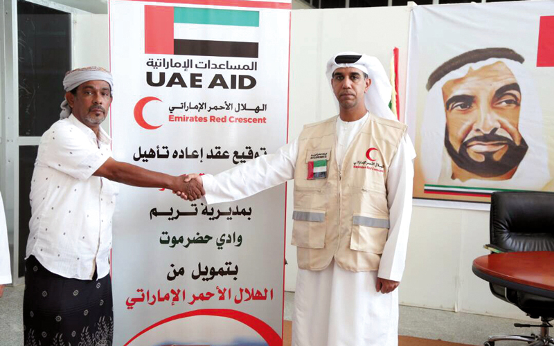وأكد رئيس فريق «الهلال الأحمر الإماراتي» بحضرموت، عبدالعزيز الجابري، خلال مراسم التوقيع التي حضرها مدير مدرسة الكودة بتريم، ريس التميمي، وعدد من الشخصيات الاجتماعية اليمنية، أن الاتفاقية تأتي في إطار دعم الهيئة لقطاع التعليم ومشروعاته بالمحافظة خصوصاً، ومشروعات التنمية والبنية التحتية عموماً.