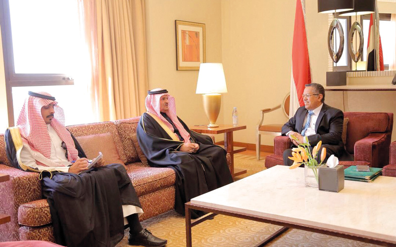 بن دغر خلال لقائه مبعوث الأمين العام لدول مجلس التعاون الخليجي إلى اليمن. سبأنت