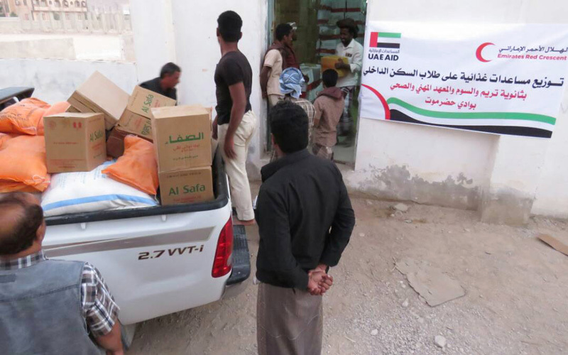 من جانبه، قال رئيس فريق الهلال الأحمر الإماراتي في حضرموت، عبدالعزيز الجابري، إن توزيع هذه المساعدات الإغاثية يأتي من أجل تلبية احتياجات الطلاب في السكنات الطلابية، الذين يعانون أوضاعاً اقتصادية صعبة، خصوصاً في مجال توفير المواد الغذائية.