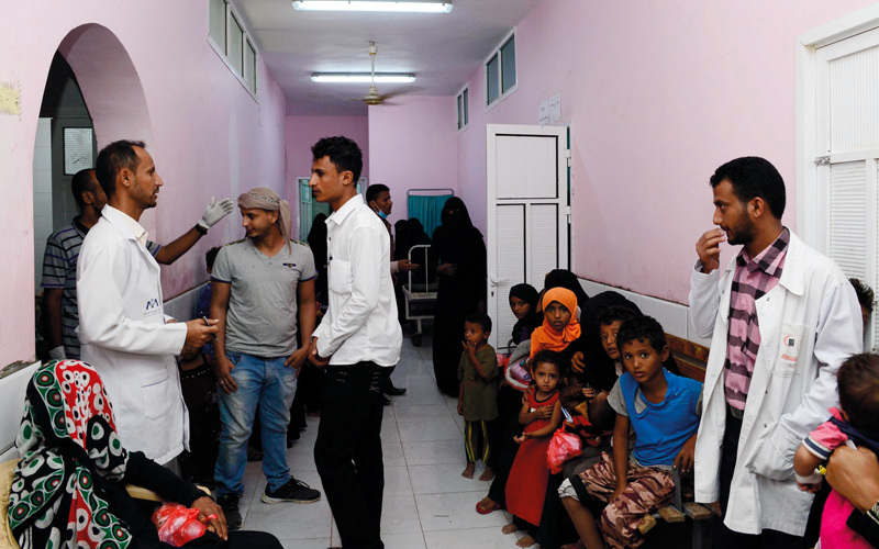طاقم مستشفى المخاء يستقبل المرضى بعد تأهيله إماراتياً. وام