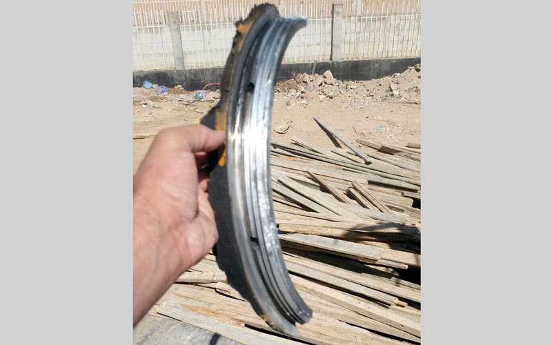 من بقايا حطام صاروخ بالستي أطلقه الحوثيون على نجران. أرشيفية