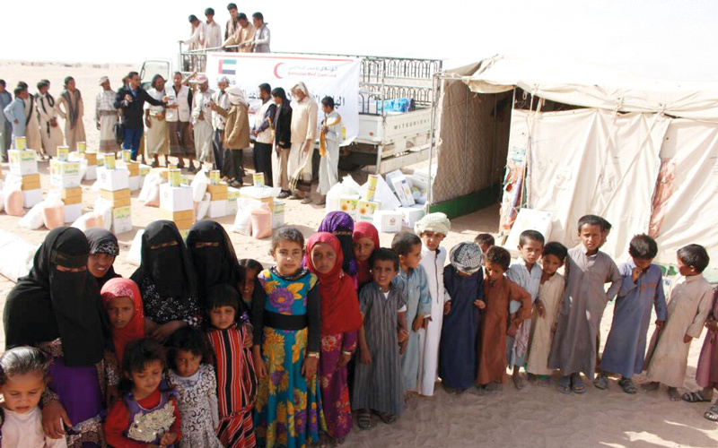 مساعدات غذائية ومخيمات إيواء من «الهلال» لبدو شبوة. وام