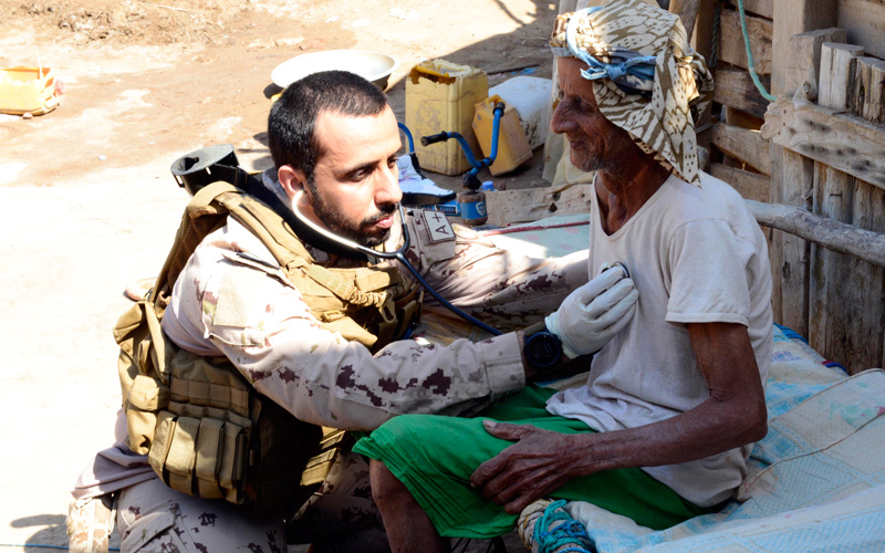 وتقوم الفرق الطبية الميدانية العسكرية، التابعة للقوات المسلحة الإماراتية، التي تعمل ضمن قوات التحالف العربي، بدور إنساني في الساحل الغربي لليمن، يتمثل في تقديم العلاج الميداني للفئات المعوزة من المرضى والوصول لهم في منازلهم.