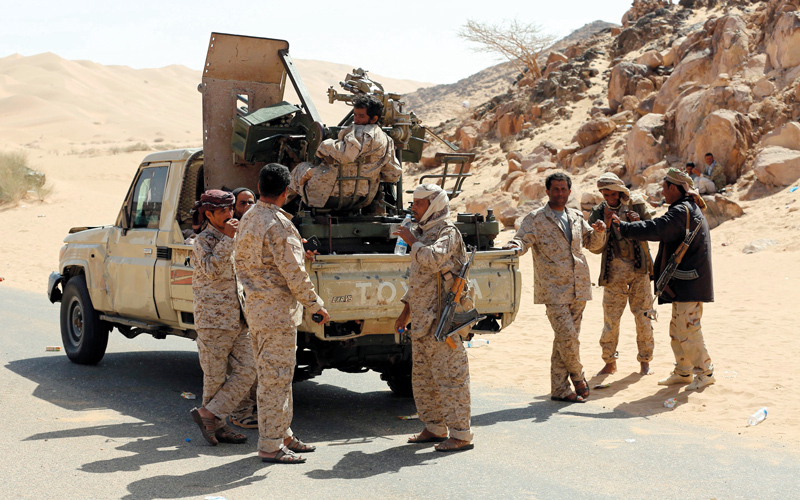 عناصر من قوات الشرعية في إحدى مناطق شبوة. أ.ف.ب