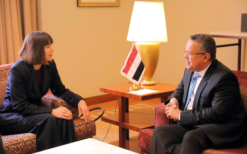 وقال خلال لقائه، أمس، القائمة بأعمال السفارة الأميركية لدى اليمن كارن ساساهارا، إن إيران لديها أطماع عسكرية واقتصادية وجغرافية في المنطقة، تستوجب على المجتمع الدولي التصدي لها وإيقافها، من خلال معالجة أوضاع اليمن، لافتاً إلى أن المرجعيات الأساسية الثلاث هي الحل المستدام لإنهاء الحرب التي شنتها الميليشيات الحوثية على الدولة، وإعاقة بناء الدولة التي اتفق عليها اليمنيون في مؤتمر الحوار الوطني الشامل، الذي انبثقت عنه مخرجات شاملة للنهوض بكامل اليمن، على أساس عادل وشامل يحفظ الحقوق.