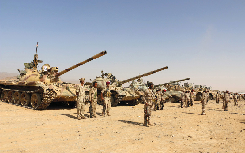 حشود عسكرية لقوات الشرعية اليمنية في محافظة مأرب. أرشيفية
