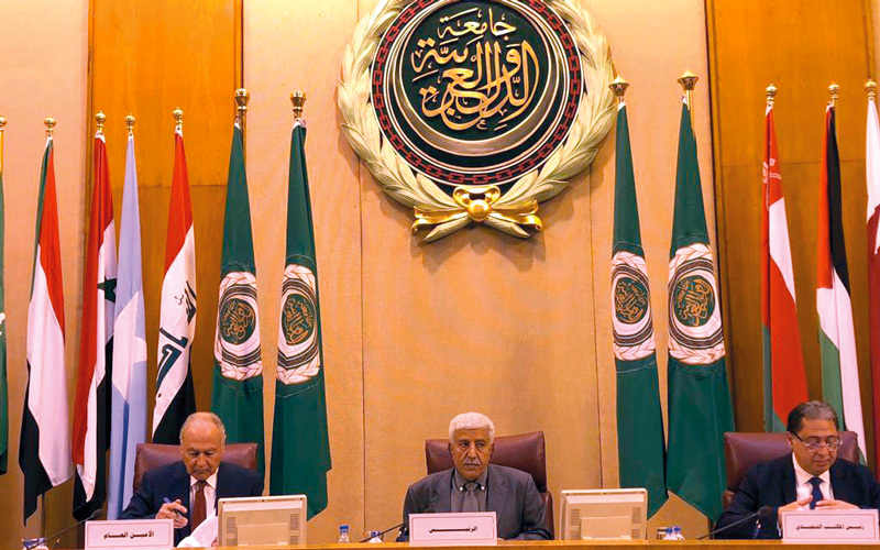 باعوم (وسط) خلال حضوره الدورة الـ49 لمجلس وزراء الصحة العرب.. وإلى يمينه أبوالغيط. سبأنت