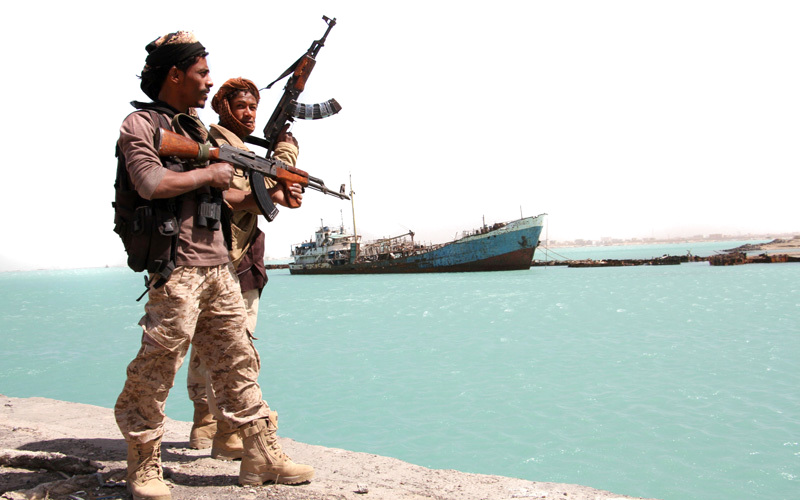 مقاتلان من قوات الشرعية على الساحل الغربي. أرشيفية