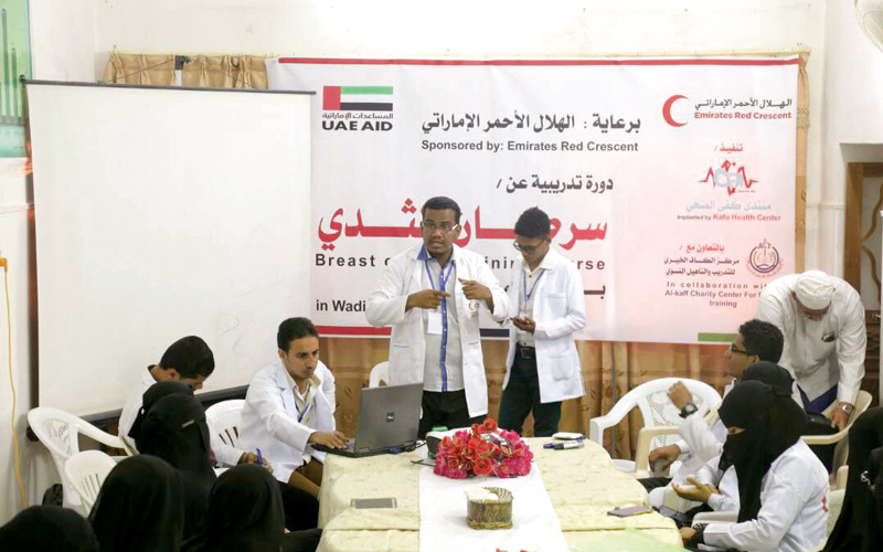 نفدت هيئة الهلال الأحمر الإماراتي، بالتعاون مع منتدى كفى الصحي، أول من أمس، دورة تدريبية عن أهمية الكشف المبكر عن سرطان الثدي، استهدفت 20 امرأة من وادي حضرموت.