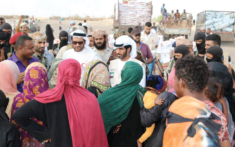 قدمت هيئة الهلال الأحمر الإماراتي مساعدات إغاثية عاجلة لنازحي قرية البيطرة بمنطقة الفيوش محافظة لحج، استجابة لمناشدة من النازحين والمعوزين، البالغ عددهم 500 أسرة. وقام وفد من الهيئة بإشراف طيب الشامسي وحمد الكعبي، صباح أمس، بتوزيع تلك المساعدات التي اشتملت على مواد غذائية أساسية، وخيام وخزانات مياه.