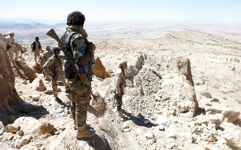 عناصر من قوات الشرعية في إحدى مناطق نهم بالقرب من صنعاء. رويترز