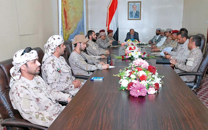 وأكد نائب رئيس الجمهورية استمرار الجهود، وبدعم أخوي من دول التحالف، لاستعادة الشرعية ودحر ميليشيات الحوثي المدعومة من إيران. واستمع نائب الرئيس من القادة العسكريين إلى المستجدات الميدانية، وأوضاع الوحدات العسكرية وأحوال منتسبي الجيش، مشدداً على الجاهزية القتالية، وتنفيذ الخطط والمهام المطلوبة.