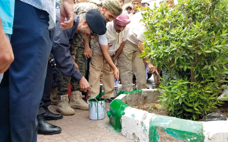 حملة لطلاء وتزيين وتشجير مديرية المعلا في عدن. وام