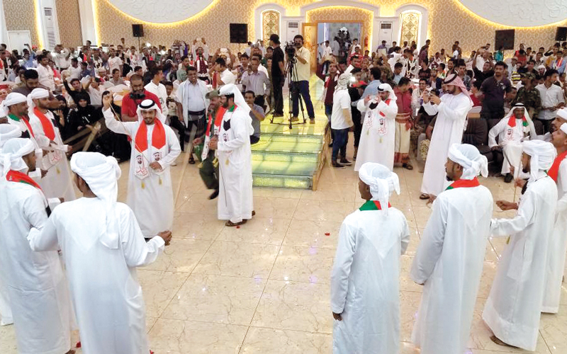 ونقل فريق «الهلال الأحمر الإماراتي» في عدن - خلال حفل الزفاف الذي أقيم أول من أمس واستمر يومين - للمحتفَى بهم، تهاني وتبريكات راعي الحفل صاحب السمو الشيخ محمد بن زايد آل نهيان، بمناسبة زواجهم الميمون.
