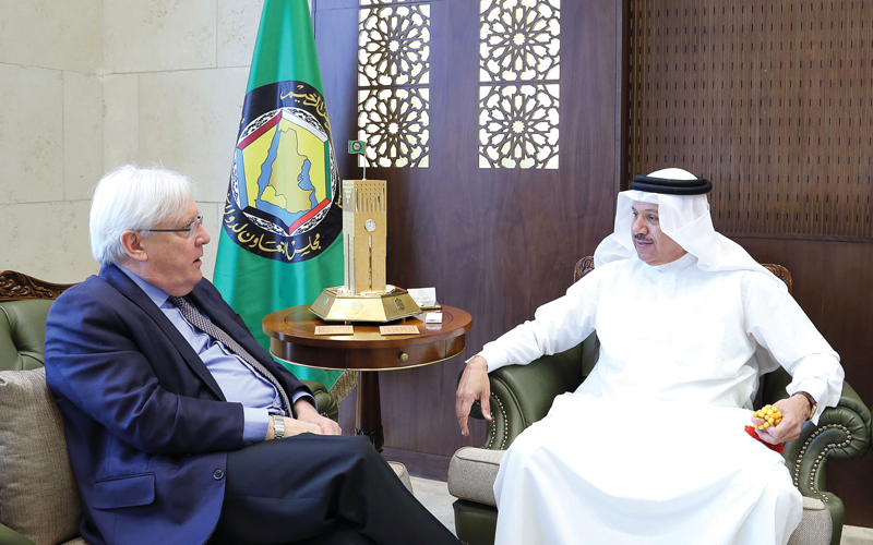اجتمع الأمين العام لمجلس التعاون لدول الخليج العربية، الدكتور عبداللطيف بن راشد الزياني، في مكتبه بمقر الأمانة العامة بالرياض، أمس، مع المبعوث الخاص للأمين العام للأمم المتحدة إلى اليمن، مارتن جريفيث، حيث جرى خلال اللقاء بحث المشاورات التي يجريها المبعوث الأممي مع الأطراف المعنية بالأزمة اليمنية لتدارس سبل استئناف المفاوضات السياسية للتوصل إلى حل سياسي ينهي الصراع في اليمن.