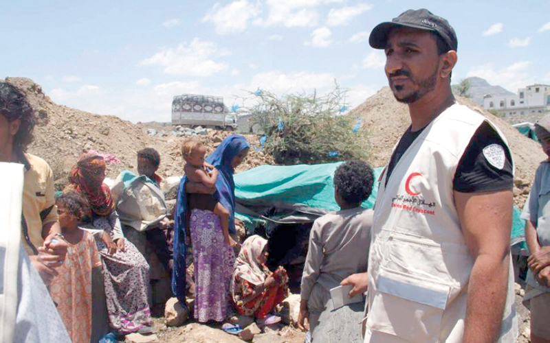 جانب من جولة فريق «الهلال» على مخيمات النازحين في تعز. وام
