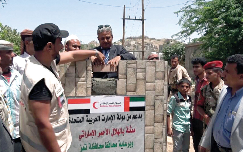وفي هذا السياق، وضع فريق الهلال الأحمر الإماراتي بمحافظة تعز، أول من أمس، حجر الأساس لثلاثة مشروعات ضمن سلسلة المشروعات التي تنفذها دولة الإمارات بتوجيهات صاحب السمو الشيخ خليفة بن زايد آل نهيان، رئيس الدولة، في «عام زايد».