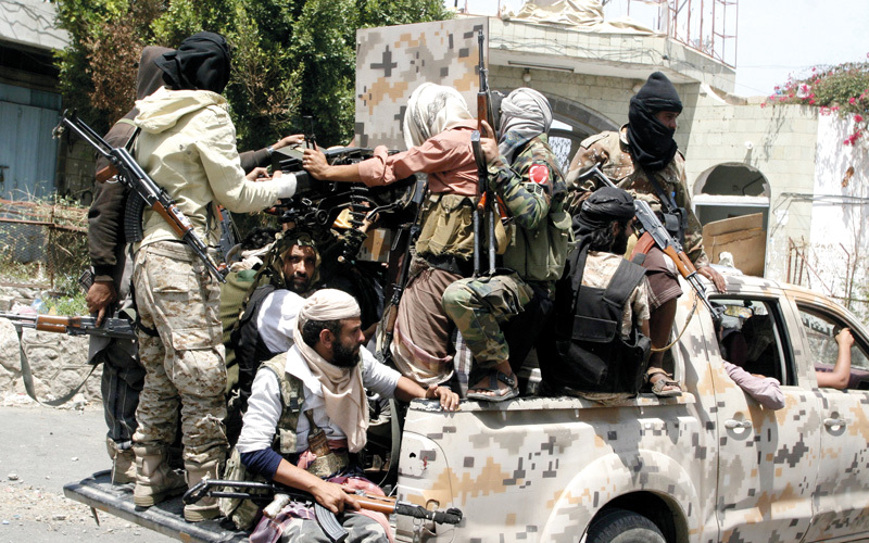 مقاتلون من قوات الشرعية في مدينة تعز. رويترز