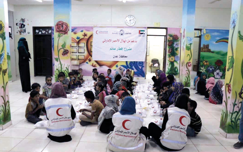 نظّمت هيئة الهلال الأحمر الإماراتي إفطاراً جماعياً لطلبة مركز حماية الطفل والأسرة في عدن ضمن فعالياته لـ«عام زايد»، وجهوده في مساعدة المحتاجين بكل المدن والقرى في اليمن الشقيق.